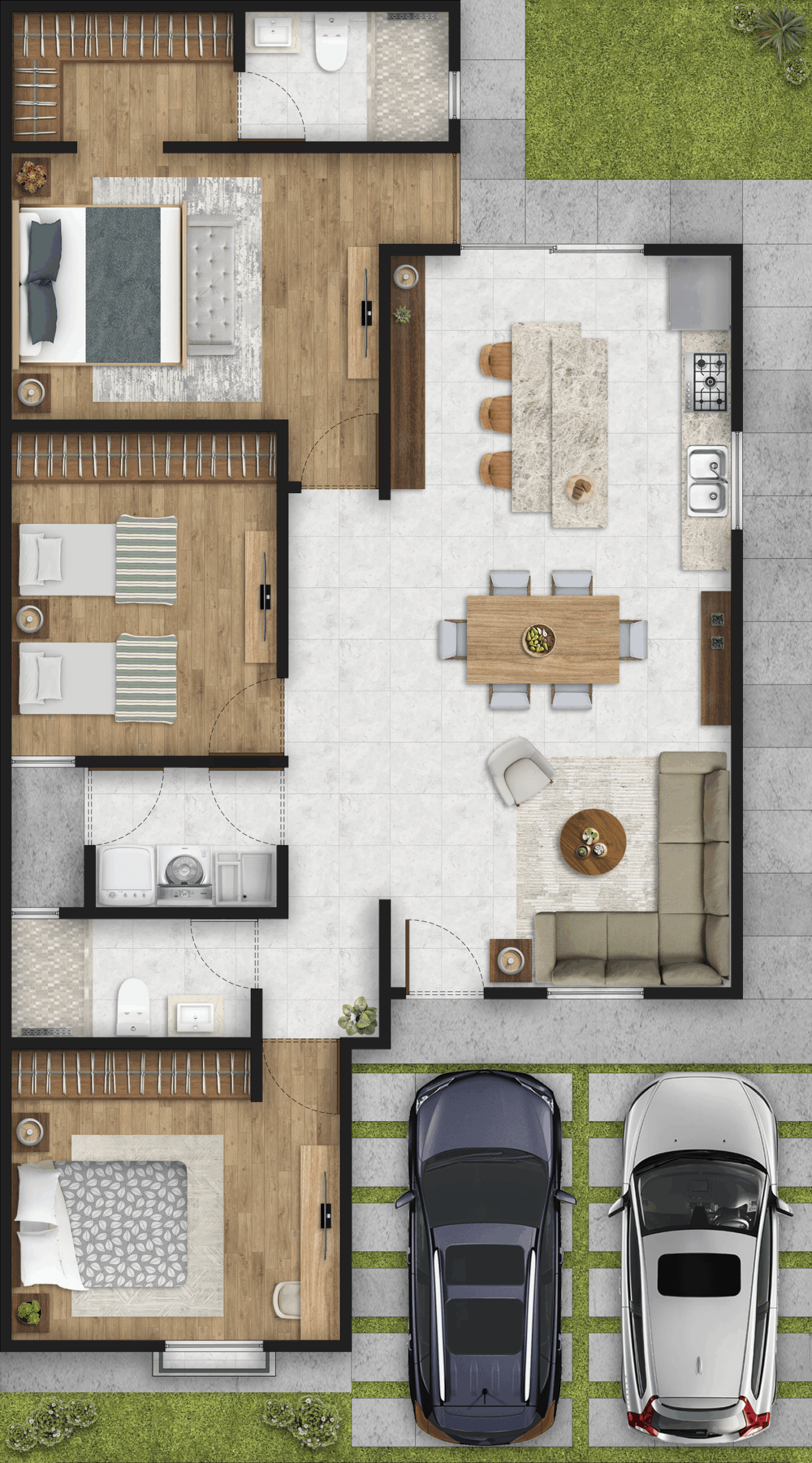 Disfruta de esta casa de una planta con amplias áreas sociales y espaciosas recamaras.